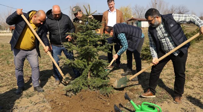 AA Edirne Bölge Müdürlüğü çalışanları, AA'nın kuruluşunun 102'nci yıl dönümü dolayısıyla sorumluluk sahalarındaki illerde 102 fidan dikti. Edirne Orman İşletme Müdürü İhsan Ceylan ve AA Edirne Bölge Müdürü Salih Baran, fidanlara can suyu verdi.(AA)