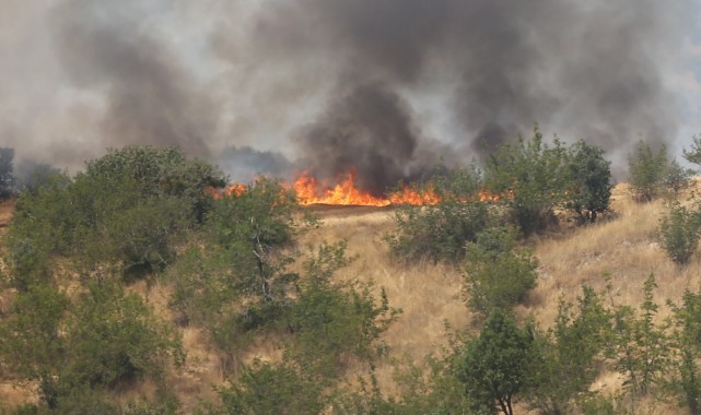 Uzunbayır köyünde anızda çıkan yangın, rüzgarın etkisiyle, hasat edilmemiş buğday tarlalarına ve ormana sıçradı.