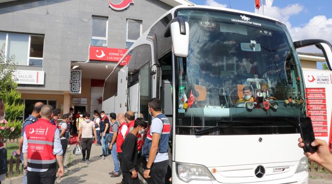 Sınır dışı edilecek 227 Afganistan uyruklu, işlemlerinin ardından Edirne Geri Gönderme Merkezinden otobüslerle İstanbul'a doğru yola çıkarıldı.