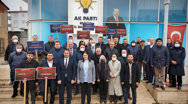 AK Parti İl Başkanlığı tarafından “Post modern darbe” olarak gerçekleşen 28 Şubat’ın 25’inci yıldönümü nedeniyle İl Başkanlığı binası önünde basın açıklaması düzenlendi. Darbecilerin kurduğu ikna odalarında inançların hiçe sayıldığını ifade eden AK Parti Edirne İl Başkanı Belgin İba, “Anti-demokratik MGK kararları alınmış, 'demokrasiye balans ayarı' denilerek dönemin hükümeti istifaya zorlanmıştır. 'Bin yıl sürecek' dedikleri 28 Şubat postmodern darbesi ile insanlar ayrımcı, ötekileştirici, insan haklarına aykırı uygulamalara maruz bırakılmış, milyonlarca insanın hayatı karartılmıştır. Kadınlarımız ve genç kızlarımız, ne acıdır ki bu karanlık sürecin en büyük mağdurlarından olmuştur. Darbecilerin kurduğu ikna odalarında nice kadın, inançları hiçe sayılarak horlanmış ve baskıya maruz kalmıştır. Başörtüleri açılmaya zorlanmıştır. Bu odalarda psikolojik baskılara maruz bırakılan kızlarımızın çoğu üniversitelerdeki, liselerdeki eğitimlerini yarıda bırakmak zorunda kalmış ve etkisi bugün dahi süren travmalar geçirmiştir. Getirilen kanunsuz başörtüsü yasağı ile kadınların çalışma hayatında var olmaları engellenmiştir” şeklinde konuştu.
