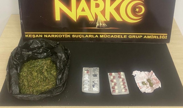 Uygulamada 140 gram esrar, 13 sentetik ecza, kağıda sarılı 1,95 gram esrar ele geçirildi.