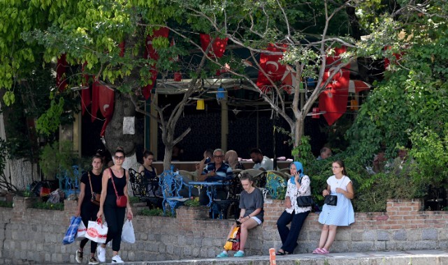 Edirne'de 41 derece ölçülen sıcak havadan bunalanlar bina gölgeleri, park ve bahçelerde serinlemeye çalıştı.