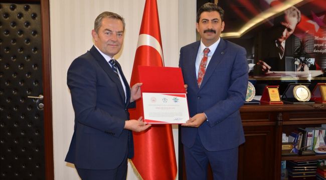 Edirne Valisi H. Kürşat Kırbıyık’ın imzaladığı “Erişilebilirlik Belgesi”; Edirne Aile ve Sosyal Hizmetler İl Müdürü Bilgin Özbaş tarafından, Edirne Cumhuriyet Başsavcısı Mustafa Çakmak’a takdim edildi.