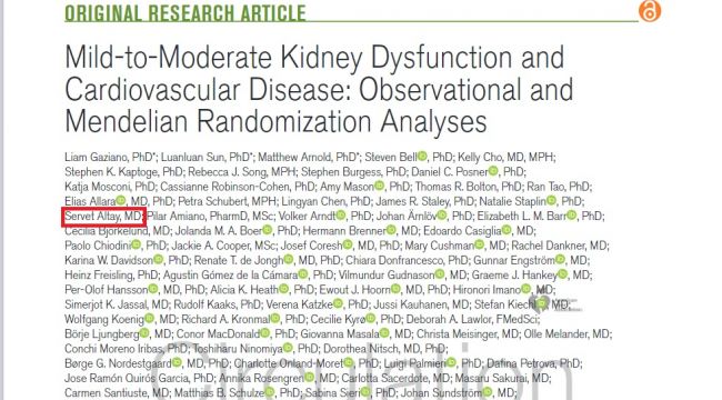 Yaklaşık 650 bin hasta üzerinde yapılmış olan uluslararası çalışma “Mild-to-Moderate Kidney Dysfunction and Cardiovascular Disease: Observational and Mendelian Randomization Analyses” başlığı ile yayımlandı.