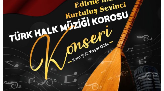 Edirne’nin kurtuluşunun 100. yıl sevinci ise Türk Halk Müziği Korosu’nun vereceği muhteşem konser ile yaşanacak. Yaşar Özel’in şefliğindeki konser 23 Kasım Çarşamba Saat:20.00’de Edirne Belediyesi Atatürk Kültür Merkezi ve Belediye Konservatuvarında gerçekleştirilecek.