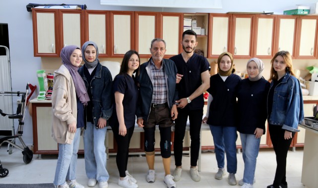 Depremde enkaz altında kalması nedeniyle Yıldırım'ın sağ bacağını da kaybettiğini dile getiren Kurtaran, "Bize yapılan müracaattan sonra protezin ölçüsünü aldık. Burada bir firmamız da sağ olsun protez malzemelerinde sponsor oldu. Protez öğrencilerimizle birlikte protezin ölçüsünü alarak hastaya uygun şekilde üretimini yaptık ve bugün ayağa kaldırdık. Hastamızın ilk yürüyüşleri kayıt altına alınmış oldu." diye konuştu.