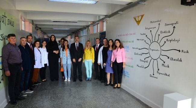Bakanlık tarafından başlatılan Matematik Seferberliği Projesi kapsamında Yıldırım Beyazıt Anadolu Lisesi koridorunda oluşturulan Matematik Sokağı’nın açılışına İl Millî Eğitim Müdürü Dr. Önder Arpacı ile birlikte Trakya Üniversitesi Eğitim Fakültesi Güzel Sanatlar Eğitimi Bölümü Başkanı Doç. Dr. Aylin Gürbüz, Okul Müdürü Tolga Ersoy, öğretmenler ve öğrenciler katıldı.