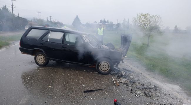 Kaza nedeniyle C.E'nin kullandığı otomobil yanmaya başladı.