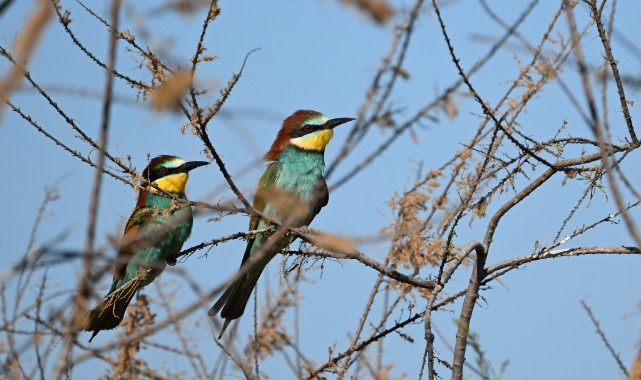 Temel besin kaynağı arılar olduğu için halk arasında "arı kuşu" olarak anılan (Merops apiaster) kuş türü, Türkiye-Yunanistan sınırında doğayı renklendiriyor.