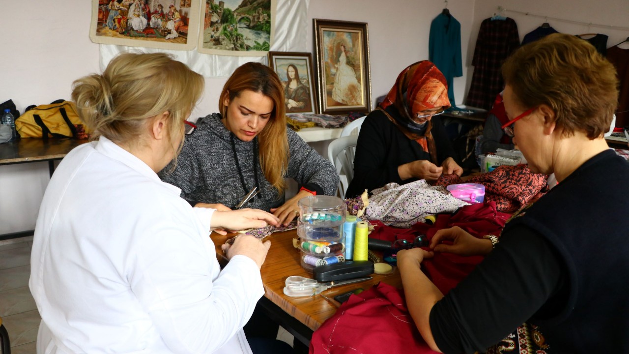 Kursiyerlerden 67 yaşındaki Vildan Cinoğlu da evde zaman geçirmek yerine kursta bir şeyler üreterek hem zamanını verimli geçirdiğini hem de evine maddi destek sağladığını ifade etti.