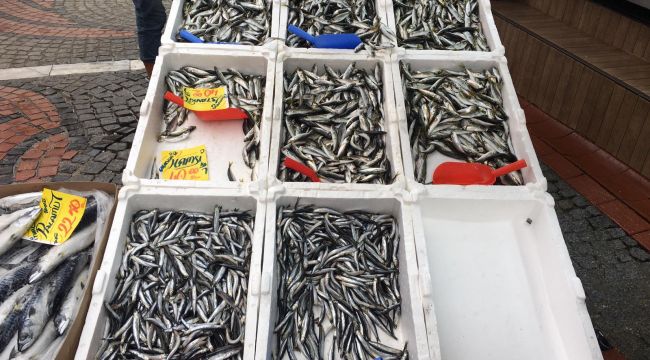Tezgahlarda, Hamsi 40 lira, istavrit 40, Çinekop 100 liradan satılıyor. (Haber-Fotoğraf: Alp Togan BOLU)