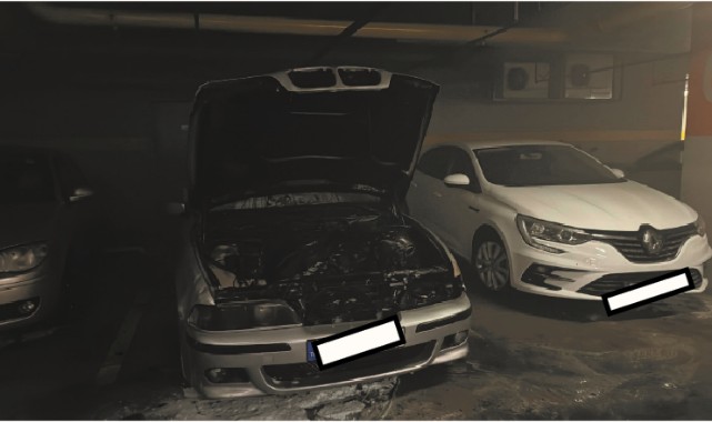 Atatürk Bulvarı'ndaki alışveriş merkezinin kapalı otoparkında park halindeki 34 CLY … plakalı otomobil henüz tespit edilmeyen nedenden yandı.Güvenlik görevlileri itfaiyeye haber ederek, yangın tüpleriyle de müdahale etti.İtfaiye dar alan müdahale aracıyla yangını kontrol altına alarak söndürdü.Duman alışveriş merkezinin bazı kesimlerine sirayet etti.Dumandan etkilenen güvenlik görevlileri ile bazı ziyaretçiler ambulanslarda tedavi edildi. Bir güvenlik görevlisi ise hastaneye sevk edildi.Olay yerine gelen Edirne Emniyet Müdürü Onur Karaburun bilgi aldı.(AA)