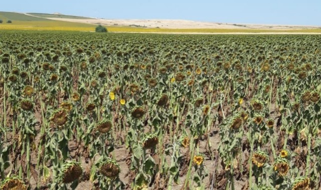 Odanın yaptığı paylaşımda, “Bu hafta başından beri yapmış olduğumuz incelemelerde maalesef ki son yılların en yüksek seviyelerinde seyreden hava sıcaklıkları ve kuraklık ilimizin önemli gelir kaynağı olan hatta çoğu üreticimizin ana geçim kaynağı olan ayçiçeği ekim alanlarımızı önemli derecede etkilemiştir. Yapılan gözlemlerde Mart sonunda ve Nisan ayında ekilen ürünlerin sıcaktan çok ciddi oranda etkilendiğini, bazı alanlarda ciddi verim kayıpları yaşanacağı, hatta biçim yapılamayacak tarlaların dahi olacağını tahmin ediyoruz.” İfadeleri kullanıldı.