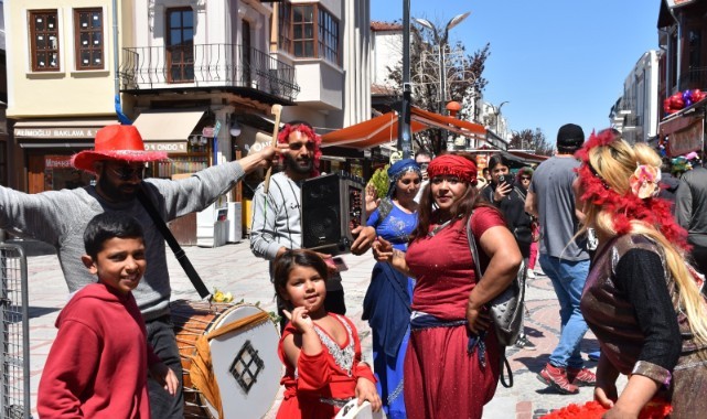 Şehrin en hareketli noktalarından Saraçlar Caddesi üzerinde düzenlenen etkinliklerde Roman vatandaşlar yöresel kıyafetleriyle renkli görüntüler oluşturdu. 9/8’lik Roman havaları eşliğinde dans eden grup, caddeyi adeta festival alanına çevirdi. Müzik seslerini duyan vatandaşlar ve turistler de ritme eşlik ederek eğlenceye katıldı.