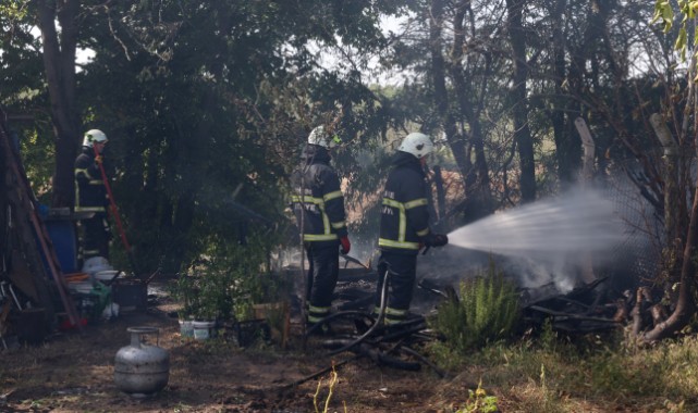 Yan taraftaki evin bahçesine de sıçrayan yangın, itfaiye ekipleri tarafından kontrol altına alınarak, söndürüldü.