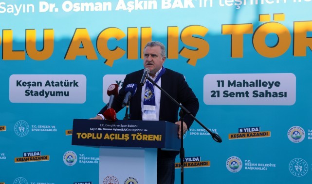 Gençlik ve Spor Bakanı Osman Aşkın Bak, "Uyuşturucuyla mücadele, bağımlılıkla mücadele bizim birinci görevimizdir. Çocuklarınızı alın spor tesislerine getirin." dedi.Bakan Bak, Keşan Atatürk Stadyumu'nda düzenlenen toplu açılış töreninde yaptığı konuşmada ilçeye yapılan yatırımların hayırlı olmasını diledi.Keşan Belediye Başkanı Mustafa Helvacıoğlu'nun çok çalıştığını, ilçeye güzel hizmetlerde bulunduğunu aktaran Bak, "Atatürk Stadyumu'nu yaptırdı, semt sahalarını ve yarı olimpik havuzu tamamladı, işte başkan çalışıyor, Keşan ayağa kalkıyor." ifadelerini kullandı.Bak, Türkiye'nin son 22 yılda spor tesislerine yapılan yatırımlarla önemli bir konuma geldiğini, sporcuların her alanda başarılı sonuçlar elde ettiğini vurguladı.Türkiye genelinde yapılan spor tesislerini çocukların kötü alışkanlıklardan uzaklaştırmak açısından çok önemsediklerini ifade eden Bak, "Anneler, babalar, veliler, teyzeler burayı iyi dinlesin. Uyuşturucuyla mücadele, bağımlılıkla mücadele bizim birinci görevimizdir. Çocuklarınızı alın spor tesislerine getirin. Futbol, basketbol, voleybol oynasınlar. Tekvando, karate, atletizm yapsınlar. İşte bu yüzden ailelere 'çocuklarınızı spor tesislerine getirin' diyoruz." diye konuştu.Edirne Valisi Yunus Sezer ise ailelere seslenerek çocuklarını spor sahalarına getirmelerini istedi.AK Parti Edirne Milletvekili Fatma Aksal ise ilçeye yapılan yatırımlar nedeniyle Bak'a teşekkür etti.Cumhur ittifakı Belediye Başkan Adayı Helvacıoğlu ise ilçeye yapılan yatırımları anlatarak katkılarından dolayı Bak'a teşekkür etti.Konuşmaların ardından Keşan Atatürk Stadyumu, yarı olimpik yüzme havuzu ve ilçeye yapılan 21 semt sahasının açılışı yapıldı.Bakan Bak, Uzunköprü ilçesinde AK Parti Uzunköprü İlçe Seçim Koordinasyon Merkezi'nin açılışını da gerçekleştirdi.Seçimlere sayılı günler kaldığını hatırlatan Bak, "Çok çalışmalıyız. Uzunköprü'yü eser siyasetiyle, hizmet siyasetiyle, AK belediyeciyle buluşturmak için kapı kapı dolaşmalıyız. Buradaki tablo şunu söylüyor. Sandıklar hazır olun, AK Parti geliyor, sandıkları patlatacak." dedi.Vatandaşlarla sohbet eden Bak, AK Parti Uzunköprü Belediye Başkan Adayı Mustafa Ravalı'ya destek istedi.(AA)