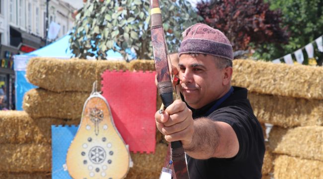 Afyonkarahisar'dan gelen Baki Çınar da geleneksel yay yapımını tanıtıp ok attı.
