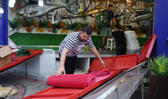 Balık pazarı esnafından Yusuf Çimen, AA muhabirine, temizlik ve dekor işlerini yaptıklarını söyledi.
