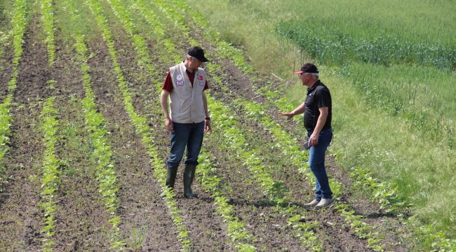 Çiftçiyle bir araya gelen Bayazıt, Yabancı ot ilaçlamalarından maksimum fayda sağlayabilmek için ilaçlamaları rüzgarsız havalarda tekniğine uygun atmaya özen gösterilmesi konusunda çiftçilere uyarılarda bulundu. (Haber: Ali KARAMAN)