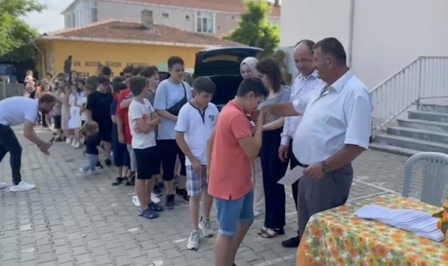 Çevre köylerdeki çocukların katılımıyla gerçekleştirilen törende, Yeşilçam'ın usta oyuncusu Ekrem Bora'ya benzetilmesi nedeniyle "Ekrem" lakabıyla tanınan Şimşek, sıraya geçen yaklaşık 150 çocuğa zarf içerinde bayram harçlıklarını teslim etti.