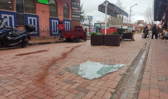 Çevre esnafının, oluşan tehlike ve çevre kirliğine hareketsiz kalarak, cam kırıklarını toplamak için yetkili beklemesi ise duyanları şaşkına çevirdi.