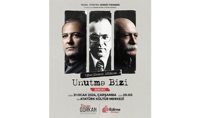 24 Ocak 1993 tarihinde evinin önünde uğradığı bombalı suikast sonucu hayatını kaybeden gazeteci- yazar Uğur Mumcu, katledilişinin 31. yılında Edirne’de, Edirne Atatürk Kültür Merkezi ve Belediye Konservatuvarı’nda gösterime sunulan "Unutma Bizi" tiyatro oyunu ile özlemle anılacak.