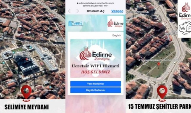 Edirne Belediyesi, hayatımızın ayrılmaz parçası olan internet için ücretsiz Wİ-Fİ hizmetini bir süre önce kentin en kalabalık noktaları olan Selimiye Meydanı ve Şehit Astsubay Ömer Halisdemir ve 15 Temmuz Cumhuriyet ve Demokrasi Şehitleri Parkı’nda hizmete sunmuştu. Toplam 40 bin metrekarelik alana internet hizmeti sağlayan ücretsiz Wİ-Fİ erişim hizmeti özellikle öğrenciler tarafından yoğun talep görüyor.