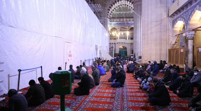 Mimar Sinan'ın ustalık eseri Selimiye Camisi'nde restorasyon nedeniyle program düzenlenmezken, vatandaşlar oluşturulan alanda namaz kıldı, dua etti.