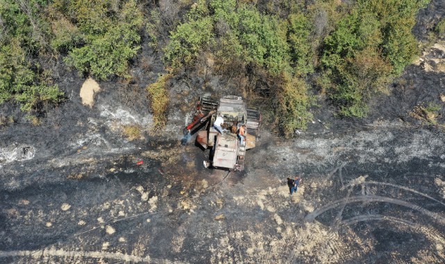 Yangın nedeniyle biçerdöver kullanılamaz hale geldi.(AA)