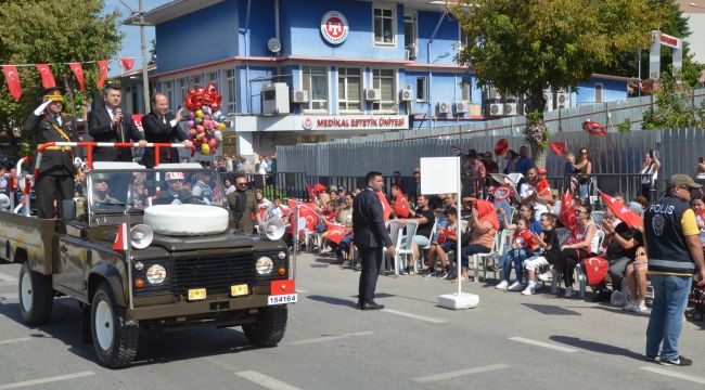 Edirne Valisi Hüseyin Kürşat Kırbıyık, Garnizon Komutanı Tuğgeneral Mehmet Cihanoğlu ve Edirne Belediye Başkanı Recep Gürkan’ın Atatürk Anıtı’na çelenk sunmasıyla başlayan törenler, Vali Kırbıyık’ın valilik makamında tebrikleri kabulüyle devam etti. Atatürk Bulvarı’nda gerçekleşen geçit töreninde Vali Kırbıyık, Garnizon Komutanı Cihanoğlu ve Belediye Başkanı Gürkan, halkı selamlayarak vatandaşların bayramını kutladı. 54. Mekanize Piyade Tugay komutanlığı sancağının geçişi ise ayakta alkışlandı.