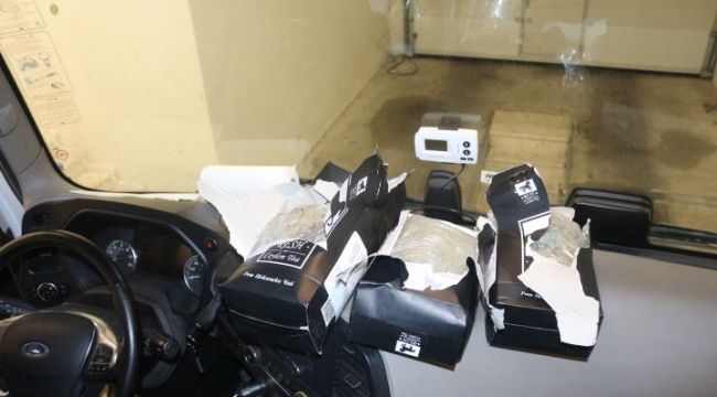 Tırda şüpheli yoğunluk tespit edilmesi üzerine yapılan detaylı aramada 20 çay paketi içinde 10 kilo 824 gram esrar bulundu.