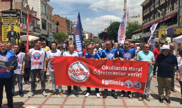 Eğitim İş Edirne Şubesi tarafından, Eskişehir ve İzmir'de 842 okula “manevi danışman” adı altında imam, müezzin ve vaiz gibi din hizmetlerinde çalışan kişilerin atanması projesi ile ilgili Saraçlar Caddesi’nde basın açıklaması düzenlendi.
