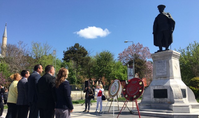 23 Nisan Ulusal Egemenlik ve Çocuk Bayramı dün Edirne’de törenlerle kutlandı. CHP Edirne İl Örgütü tarafından Atatürk Anıtı’nda düzenlenen törende, İl Başkanı Samet Kahraman, Merkez İlçe Başkanı Olcay Bakkalcı, Kadın Kolları İl Başkanı Çiğdem Gegeoğlu, Kadın Kolları Merkez İlçe Başkanı Reyhan Güzel ve Gençlik Kolları Başkanı Sergen Kuru, anıta çelenk sundu.