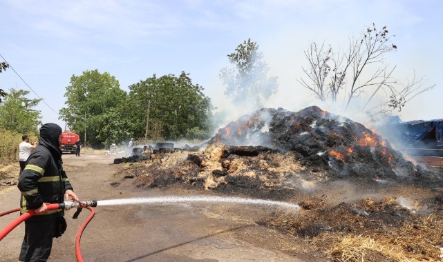 İtfaiye ekipleri balyaların bulunduğu bölümde çıkan yangını ahıra sıçramadan kontrol altına alarak söndürdü.