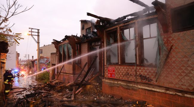 İtfaiye ekiplerinin çalışmaları sonrası kontrol altına alınan yangında ev kullanılamaz hale geldi. (AA)