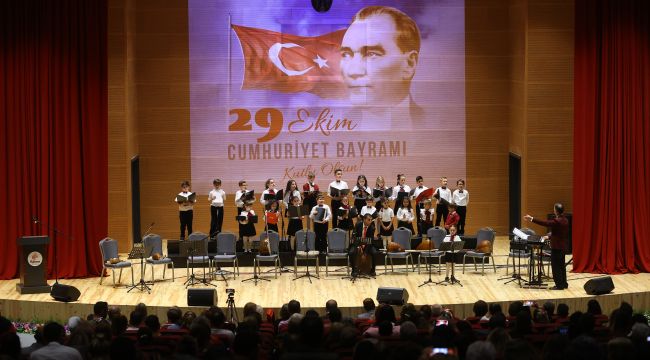 Atatürk Kültür Merkezi ve Belediye Konservatuarında şef Yaşar Özel yönetimindeki koro, "Cumhuriyet Hürriyet Demek", "Biz Atatürk Çocukları" gibi şarkılar ile "Cumhuriyet Marşı"nı seslendirdi.