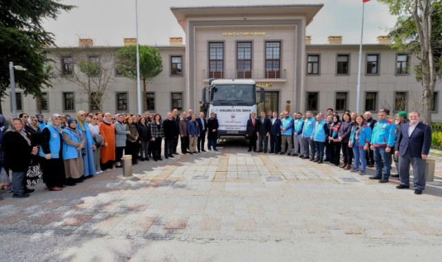 Kampanya kapsamında hayırseverlerin nakdi yardımları ile alınan pirinç, nohut, bulgur, mercimek, fasulye, sıvı yağ, bal gibi gıda ürünleri paketlenerek kamyona yüklendi.