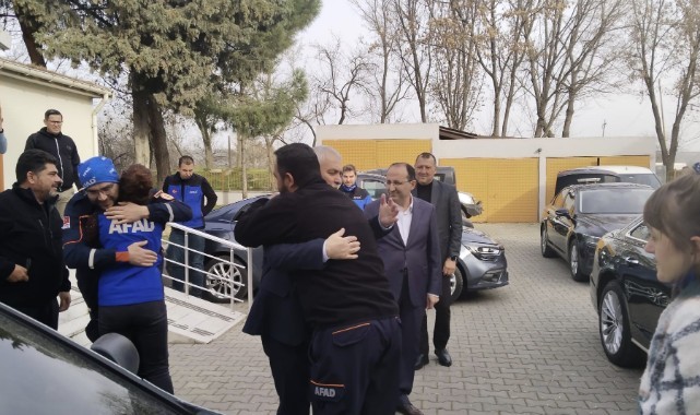 Tekirdağ Valisi Aziz Yıldırım, deprem bölgesindeki arama kurtarma çalışmalarına katılıp kente dönen AFAD ekiplerini koordinasyon merkezinde karşıladı.