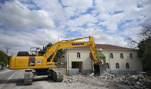 Çevredeki yolları trafiğe kapatan İl Özel İdaresi ekipleri, yıkıma başlamak için cami yanındaki Şehit Cem Havale İlkokulu ve Ortaokulu öğrencilerinin öğle arasına girmesini bekledi.