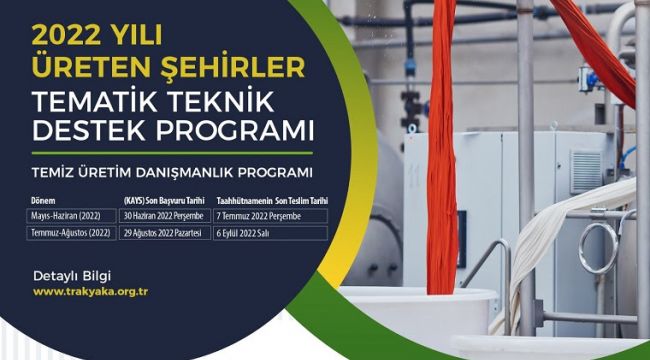 “Program Tekirdağ ilinde yer alan ve tekstil ürünlerinin bitirilmesi (boya, apre, ağartma, baskı vb.) alanında faaliyet gösteren işletmelerde uygulanıyor. Tekirdağ ve ilçelerindeki tekstil ürünlerinin bitirilmesi olarak ifade edilen boya, apre, ağartma, baskı vb. alanlarda faaliyet gösteren firmalara yönelik olarak ilan edilen program kapsamında 1.700.000 TL’lik bir danışmanlık desteği veriliyor. Proje uygulama süresi 12 ay olan Program kapsamında temiz üretim etüt çalışması yapılacak. Etüt kapsamında tesiste şu çalışmalar yapılacak: Ön Değerlendirme Temiz Üretim Etüdü Kapsamının ve Sınırlarının Belirlenmesi Proses Akım Şemalarının Çizilmesi ve Veri Toplanması Ölçüm ve Analizlerin Yapılması Temiz Üretim Olanaklarının Tespit Edilmesi Ön Fizibilite Çalışması” (Haber Merkezi)