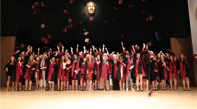 Tören, tüm mezunlara belgelerinin verilmesinin ardından meslek yemini edilmesi ve keplerin havaya atılmasıyla sona erdi. (AA)