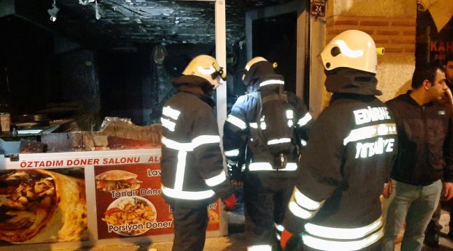 Kentte bulunan bir dönerci dükkanında gece yarısı elektrik kaçağından çıktığı tahmin edilen yangında işyeri kullanılmaz hale geldi.