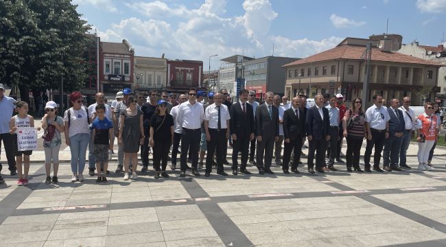 Konuşmaların ardından Öztürk ve beraberindekiler Atatürk Anıtı'ndan Saraçlar caddesine kadar yürüyüş yaptı. (AA)