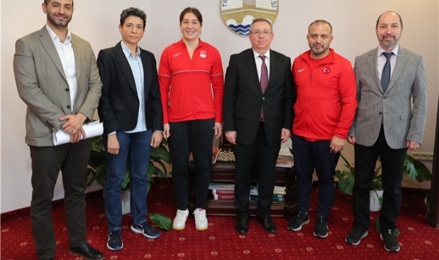 Rektör Prof. Dr. Erhan Tabakoğlu, Trakya Üniversitesi mezunları milli güreşçi Yasemin Adar ile Kadın Güreş Milli Takımı Teknik Direktörü Efraim Kahraman’ı, Kırkpınar Spor Bilimleri Fakültesi Dekanı Prof. Dr. Nurper Özbar, Sağlık Bilimleri Enstitüsü Müdürü Prof. Dr. Necdet Süt, Trakya Üniversitesi Kırkpınar Spor Bilimleri Fakültesi Öğretim Üyesi Doç. Dr. İsa Sağıroğlu ve Yasemin Adar’ın Genç Milli Takım Güreş Antrenörü, eşi Erdem Yiğit ile birlikte Rektörlük makamında ağırladı.