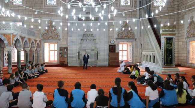 İl Müftüsü Alettin Bozkurt, öğrencilere 2. Bayezid Camisi hakkında bilgi verdi.