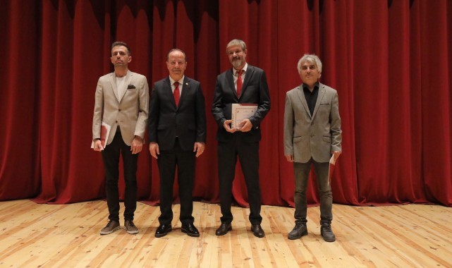 Belediye Başkanı Recep Gürkan, 100. Yıl Anıtı Tasarım Mimarları Taner Tuna, Müslüm Özcan ve Emrah Çivici’ye teşekkür plaketi takdim etti.(Haber Merkezi)