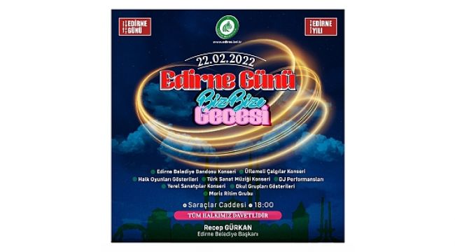 Bu etkinliklerin en özel gününü de 22.02.2022 tarihi olarak belirleyen Edirne Belediyesi, bu özel gün için “Biz Bize Gecesi” düzenliyor.