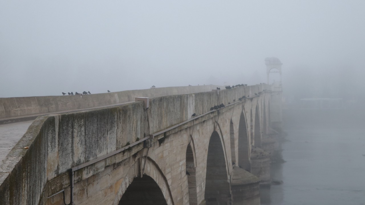 Edirne'de özellikle gece ve sabah saatlerinde yaşanan sis nedeniyle görüş mesafesi yer yer 50 metrenin altına kadar düştü.