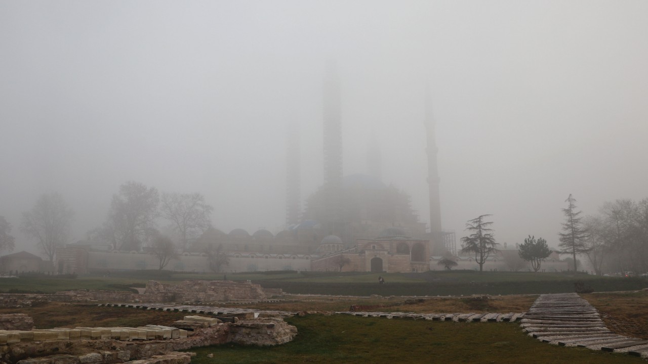 Selimiye Camisi ve Eski Cami başta olmak üzere kentin asırlık tarihi yapıları sis altında kaldı. Sis nedeniyle camilerin minareleri gözden kayboldu, seyirlik görüntüler meydana geldi. Hava sıcaklığının 1 derece ölçüldüğü kentte, sisin öğle saatlerine doğru etkisini kaybetmesi bekleniyor. (AA)