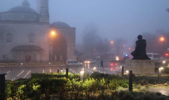 Selimiye Camisi başta olmak üzere birçok anıt eser sis altında kaldı, gözden kayboldu.
